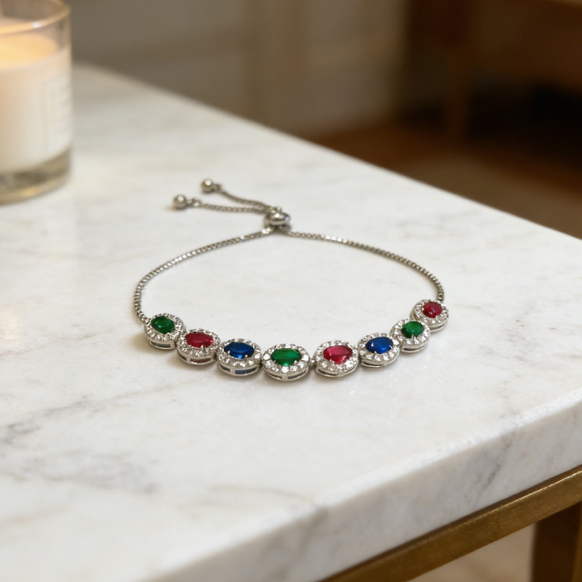 Command the room with the Imperial Oval Radiance, a masterpiece designed for ultimate luxury. This exquisite bracelet features a row of seven brilliant oval-cut stones, each meticulously framed by a shimmering halo of pavé-set crystals. From the playful brilliance of our new multicolor edition to the deep, regal tones of emerald and sapphire, this collection brings an unmistakable royal glow to your wrist.