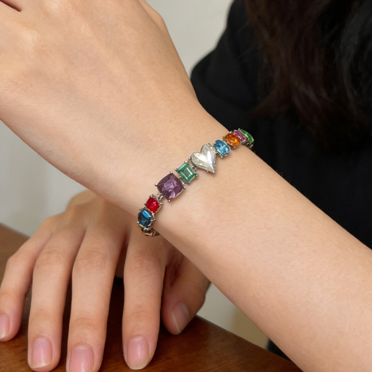 Artistic Multi-Cut Design: A beautiful mosaic of heart, square, and round crystals creates a dynamic, multi-dimensional sparkle that catches the light from every angle.