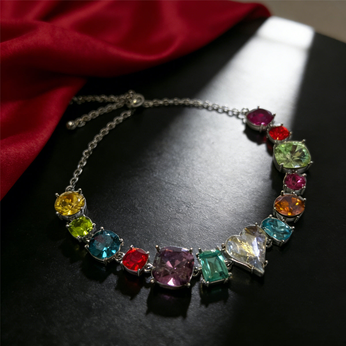 Premium Silver Finish: The high-shine silver-tone chain perfectly complements the vivid colors of each gemstone.
