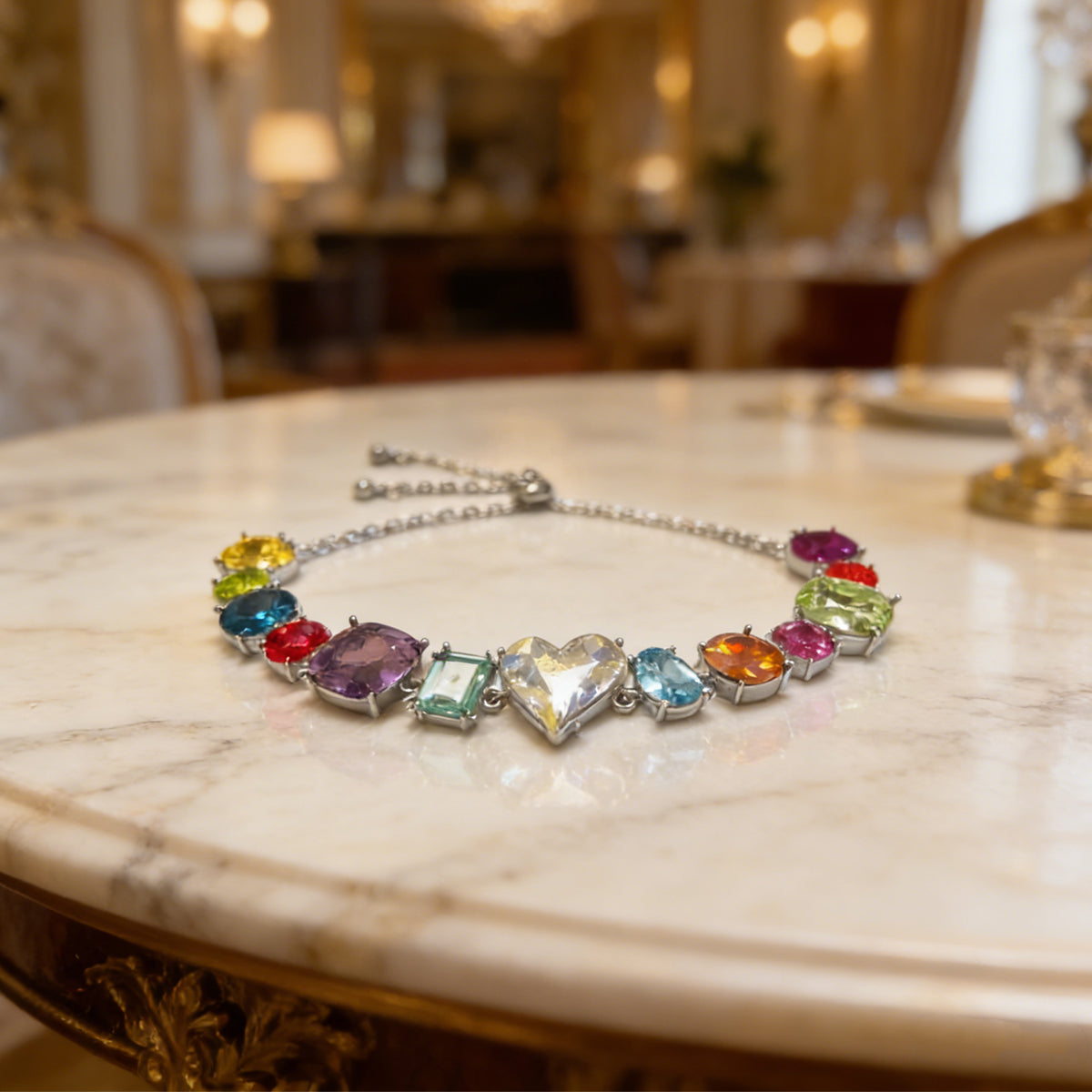 Material: Premium silver-finish alloy with high-grade multi-shaped AAA+ crystals.