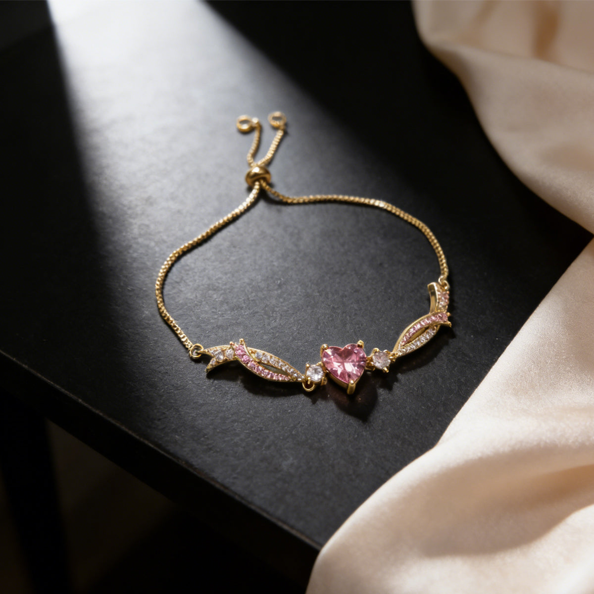 Inspired by the ethereal beauty of celestial wings, the Seraphic Heart Slider is more than just jewelry—it’s a statement of grace. Featuring a breathtaking heart-cut centerpiece nestled between two intricately pavé-set wings, this bracelet symbolizes protection and eternal love. It’s designed for the woman who carries elegance in her every move.