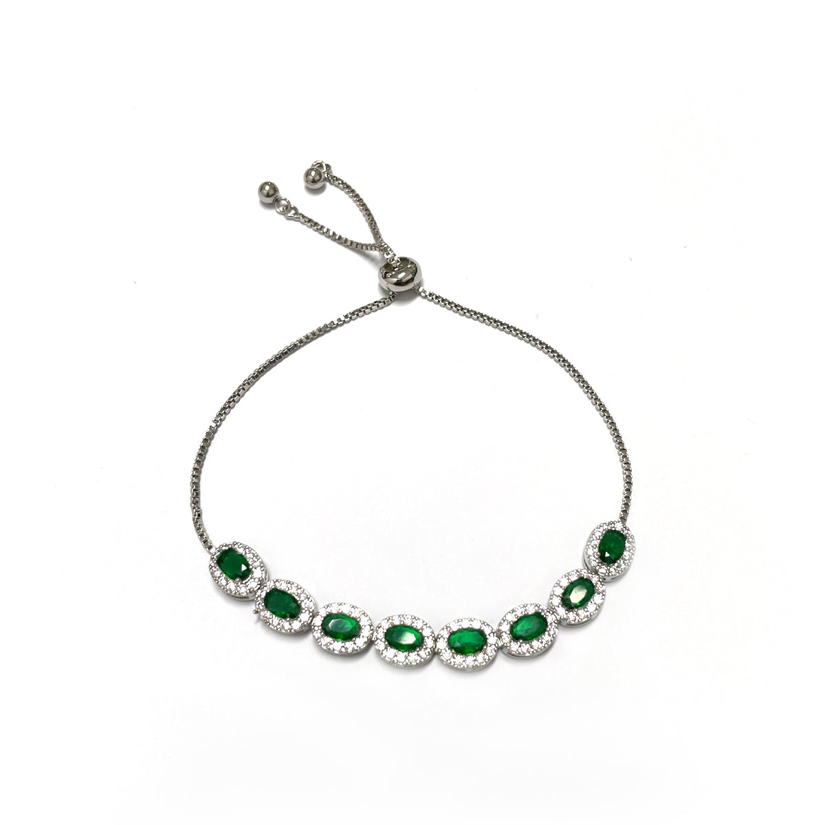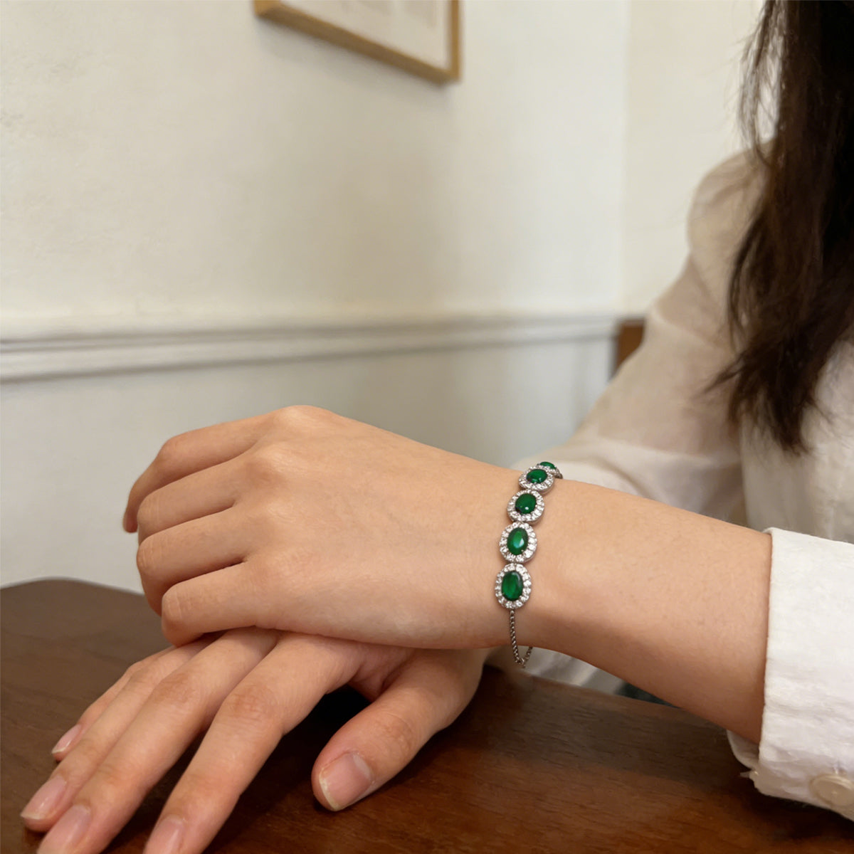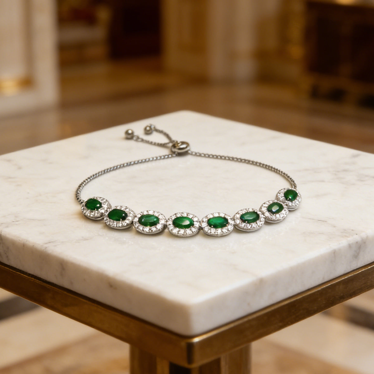 Command attention with a piece that defines royal elegance. This exquisite bracelet features seven brilliant oval-cut stones, each meticulously framed by a shimmering halo of pavé-set crystals. Designed to mirror the fire and depth of fine-cut gemstones, this piece brings a prestigious glow to your wrist, making it an essential for any sophisticated ensemble.