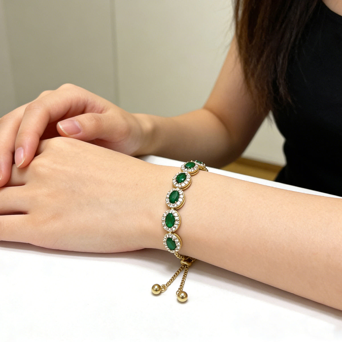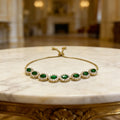 Command the room with the Imperial Oval Radiance, a masterpiece designed for ultimate luxury. This exquisite bracelet features a row of seven brilliant oval-cut stones, each meticulously framed by a shimmering halo of pavé-set crystals. Whether you choose the regal depth of emerald and sapphire tones or the pure fire of classic clear crystals, this piece brings an unmistakable royal glow to your wrist.