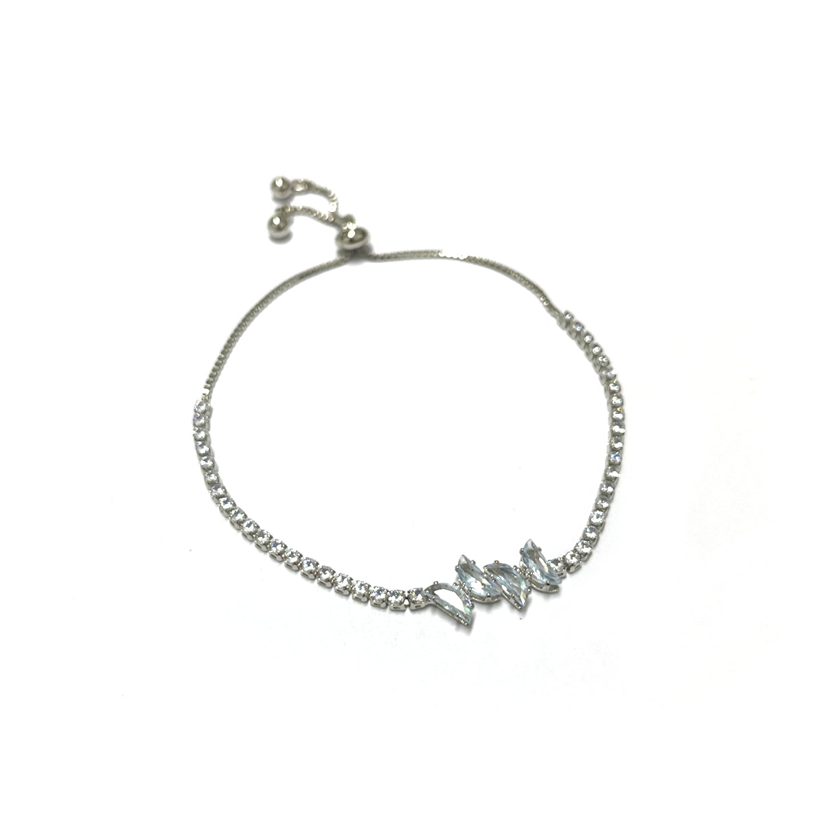 Add a touch of royal brilliance to your ensemble with the Aura Marquise Tennis Bracelet. This exquisite piece features a classic tennis-style chain of shimmering crystals, highlighted by four stunning marquise-cut center stones. Whether you choose the radiant gold or the sleek silver finish, it offers a high-end look that seamlessly transitions from day to night.