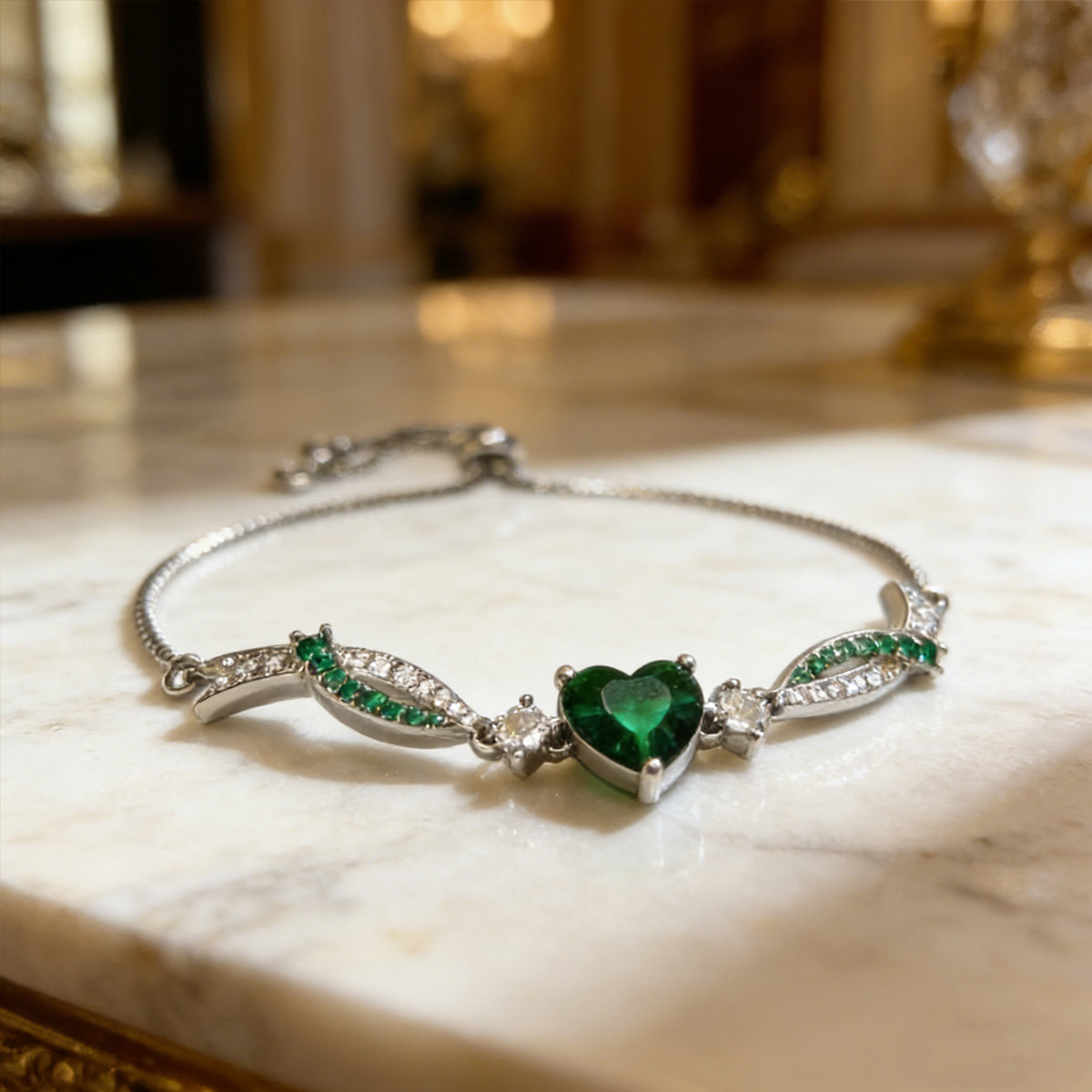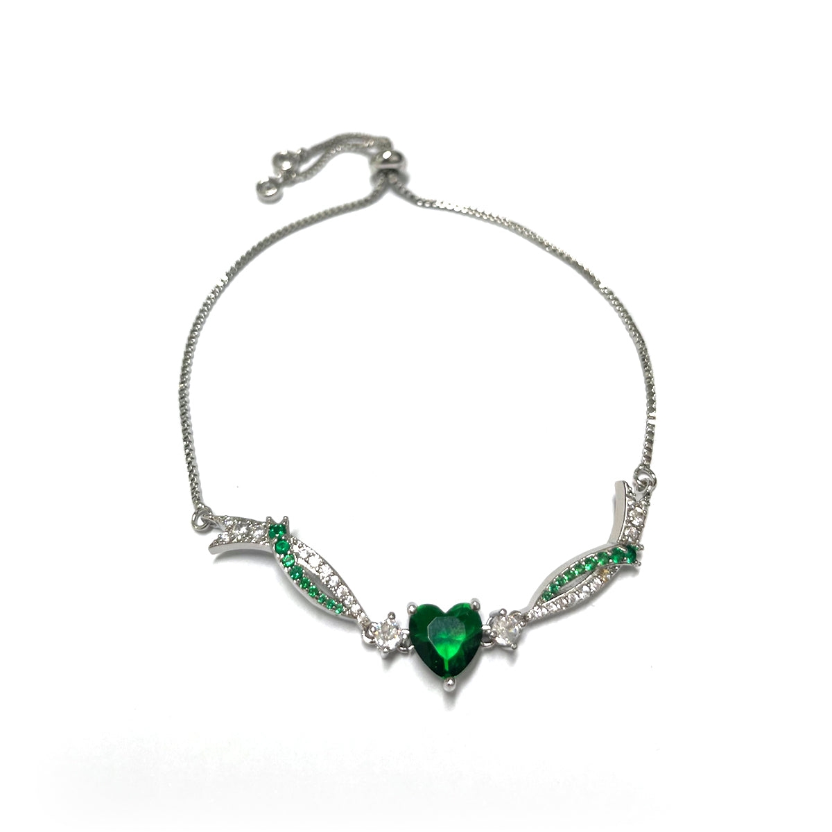 The Signature Silhouette: A precision-cut heart gemstone anchored by fluid, arching wings, creating a delicate 3D profile on the wrist.